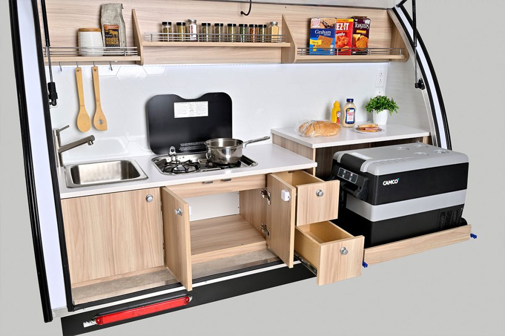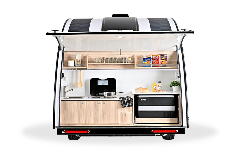 Outdoor cooking enhances our camping experiences! We are excited to share that we have transformed our award-winning TAB 360 Teardrop Camper by relocating the well-equipped kitchen to the rear exterior. We’ve also added a convenient hatch door, creating the ultimate teardrop clamshell camper for unforgettable adventures.