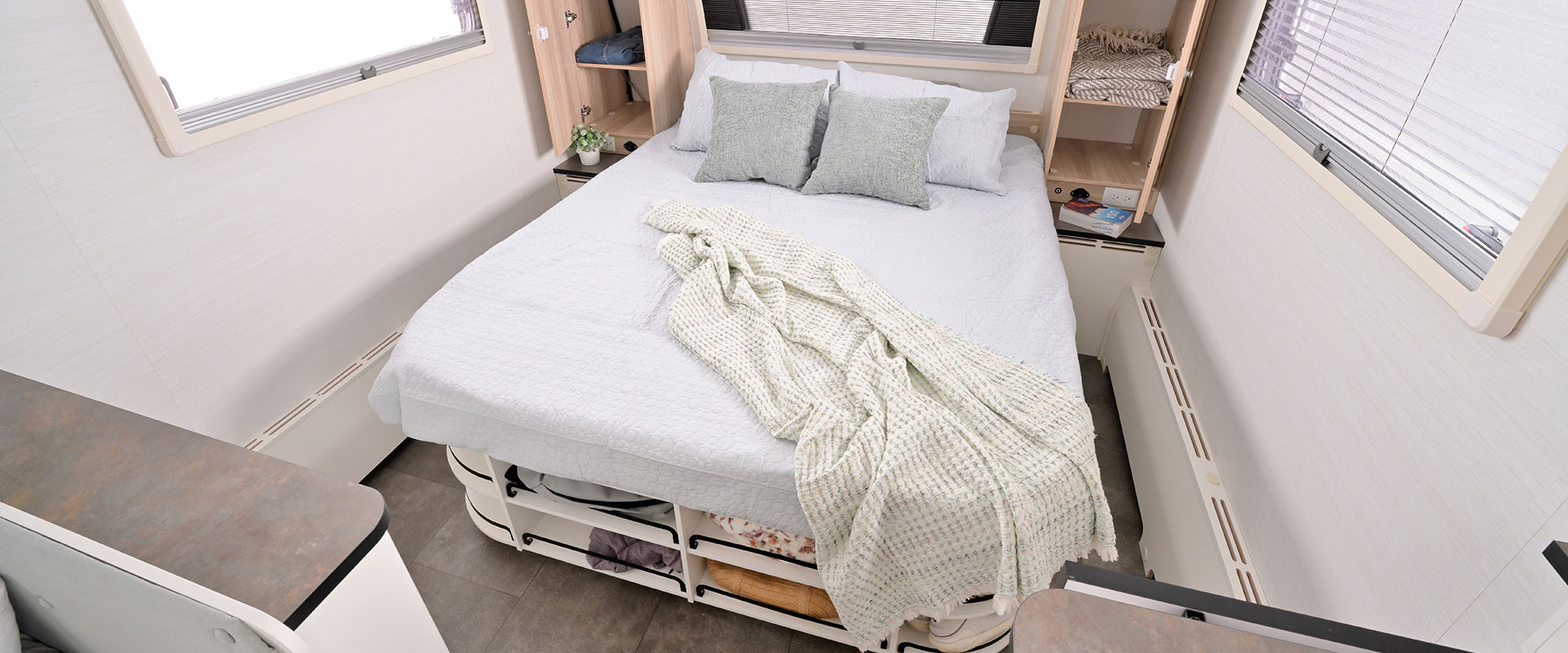 The open layout boasts an abundance of windows that invite natural light, creating a bright and airy atmosphere. The Haven truly stands out as the ultimate “home on the road,” ready to accompany you on your next journey with warmth and style!