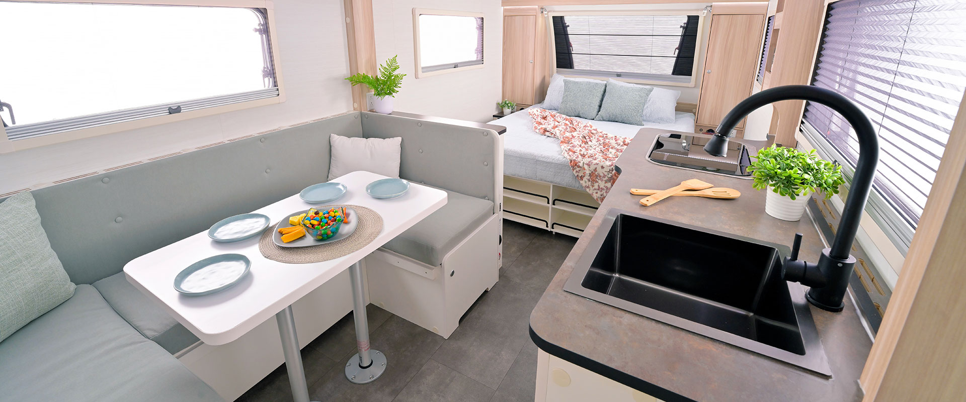 We are delighted to unveil the latest member of the nuCamp family: the Haven! Spanning over 22 feet, this remarkable travel trailer offers an expansive and inviting interior. True to its name, the Haven embodies a sanctuary of safety, comfort, and retreat—meticulously designed to provide a personal haven for campers on every adventure.