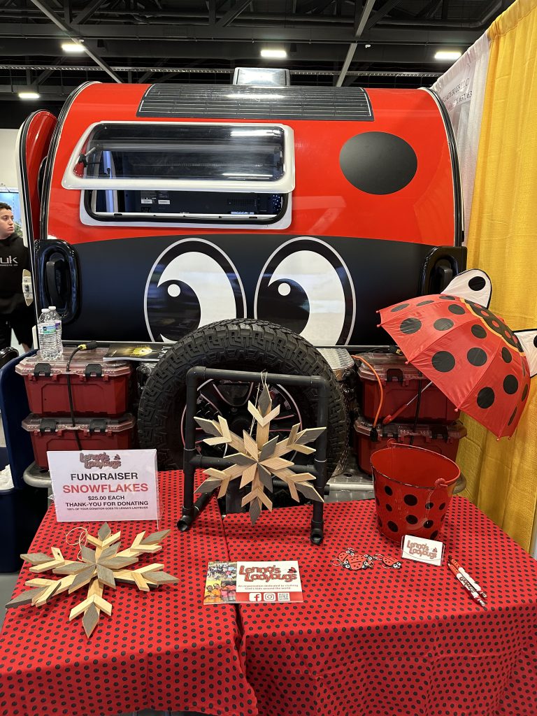 Susan’s unique teardrop trailer isn’t just for camping—it’s also a tool for spreading awareness about Lenna’s Ladybugs. In 2024, she brought it to the International Conference on Missions, a four-day event that connects missionaries and organizations with churches and individuals. This past September, she also camped in her TAB at the 75th anniversary celebration at Roundlake Christian Camp.