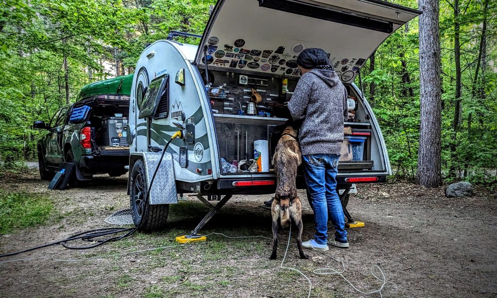 After a year and a half of tent camping, they decided to hunt for an RV to make it easier to take quick weekend trips and for more comfortable sleeping accommodations. In 2020, when they saw the TAG at the Chicago RV Show, they kicked off their shoes and crawled inside.