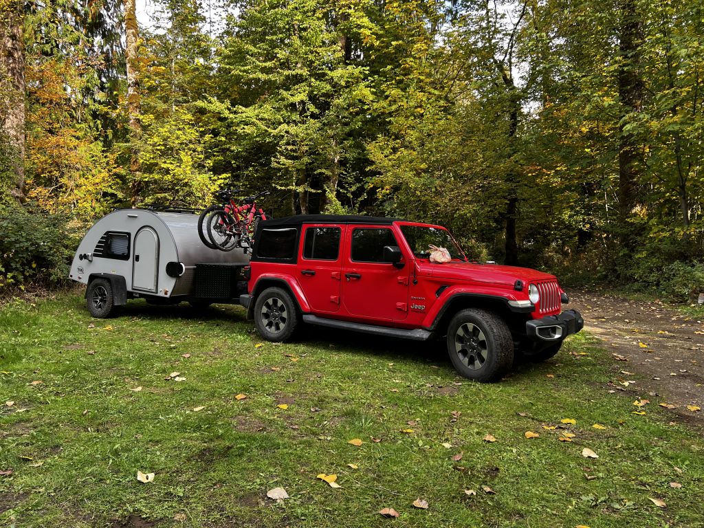 As Ivan explained, “We hopped on a one-way flight from Miami, Florida to Ontario, Oregon to buy a too-good-to-be-true Jeep Wrangler since we didn’t have any capable tow vehicle at the time. From there, the search continued for the perfect teardrop travel trailer.”