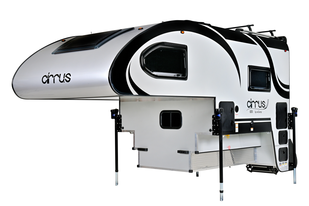 The Cirrus 820 Truck Camper is a four-season, hard-side truck camper designed for a ¾-ton or 1-ton short-bed truck. This truck camper features a European design and is outfitted with everything you need including a large bed, wet bath, and kitchenette.