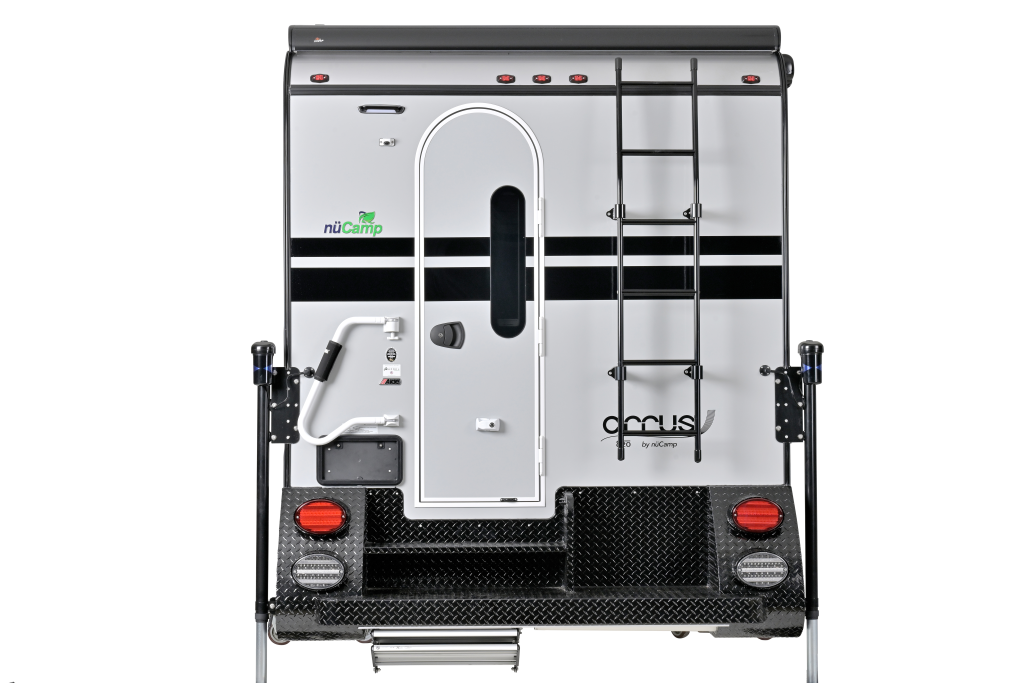 This year, the Cirrus 820 underwent several exterior changes. At the back of the camper, you’ll notice the rear roof has been redesigned to emulate the sleeker look of the Cirrus 620. The ladder has also been replaced with a new roof access ladder.