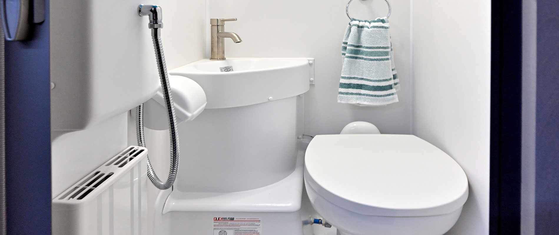 This four-season camper is equipped with the Alde® Heating and Hot Water System, ensuring warmth and comfort during winter nights. The Alde system offers efficient and silent hydronic heating, providing a cozy atmosphere. Wake up to the luxury of a hot shower in the camper’s wet bath, complete with a shower, toilet, and vessel sink.
