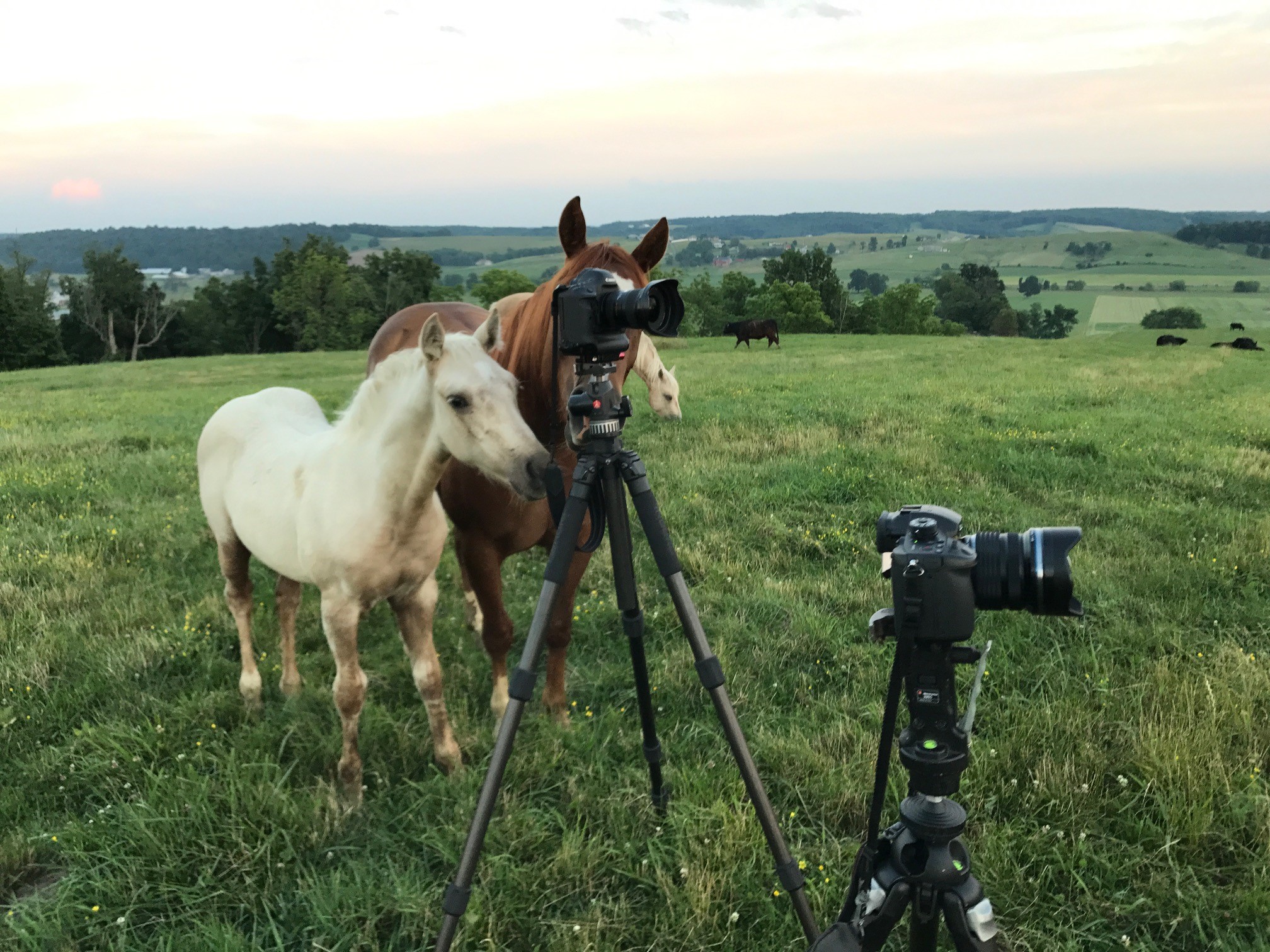 Rested and ready to go for a second day, we loaded a [beautiful] Cirrus Truck Camper onto one of our trucks in search of picture-perfect scenery. About an hour into the drive, we came across a friend’s farm who was extremely helpful and let us take photos on his land – they even let John camp there over night. After driving through a plentiful amount of cow manure, passing horses along the way, and up one of the steepest hills our campers have seen, we reached a beautiful spot. The spot overlooked all of Amish Country; it was breathtaking. Throughout the night, John was had some unexpected guests join him for several photos. In fact… it looked like they had a knack for photography.