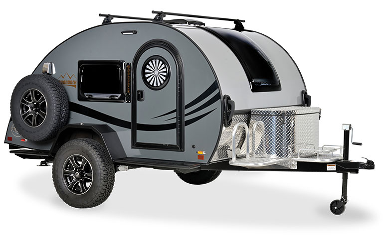 Are you yearning for even more adventure while camping? The boondock package features everything you need to take the road less traveled. Aggressive off-road tires, a pitched axle, and more ground clearance make this teardrop trailer built for more rugged terrain, allowing you to travel off the beaten path. This travel camper also includes a solar roof package, making it easier to camp off the grid. No matter where you go, the TAG teardrop trailer is ready for adventure.