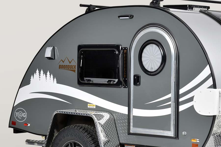 Wanting even more adventure while camping? The boondock package features everything you need to take the road less traveled. Aggressive off-road tires, a pitched axle, and more ground clearance make this teardrop trailer built for more rugged terrain, allowing you to travel off the beaten path. This travel camper also includes a solar roof package, making it easier to camp off the grid. No matter where you go, the TAG teardrop trailer is ready for adventure.