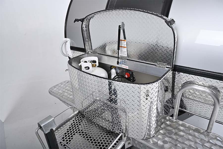 Enjoy being surrounded by nature as you use the well-equipped rear kitchen galley featuring a sink and two-burner stove. At night, you’ll climb into a warm and cozy interior – complete with a large window for stargazing. The spacious bed and heating and cooling systems will keep you dry and comfortable. We also offer the TAG XL Teardrop Travel Trailer, which adds an extra foot to the width, giving you a bit more counter space a little more sleeping room. Compare our TAG Teardrop Travel Trailers here.