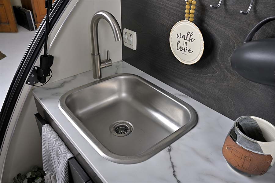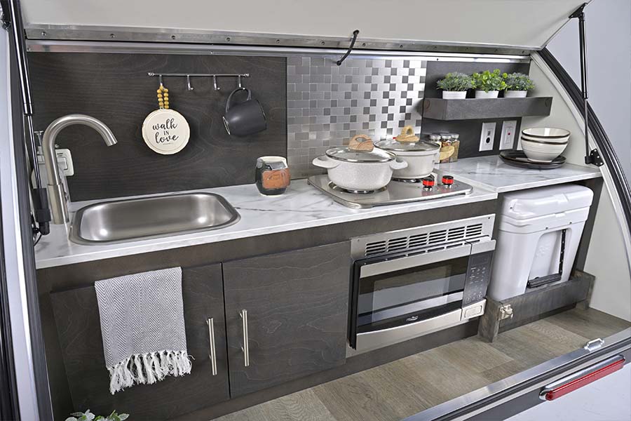 The TAG is lightweight and easy to tow, making it the perfect option for someone looking to take their camping experience to the next level. This trailer allows you to bring some of the comforts of home when you hit the road. You’ll enjoy being surrounded by nature as you use the well-equipped rear galley. At night, you’ll climb into a warm and cozy interior — complete with a large window for stargazing. No matter where you go, the TAG teardrop trailer is ready for adventure.