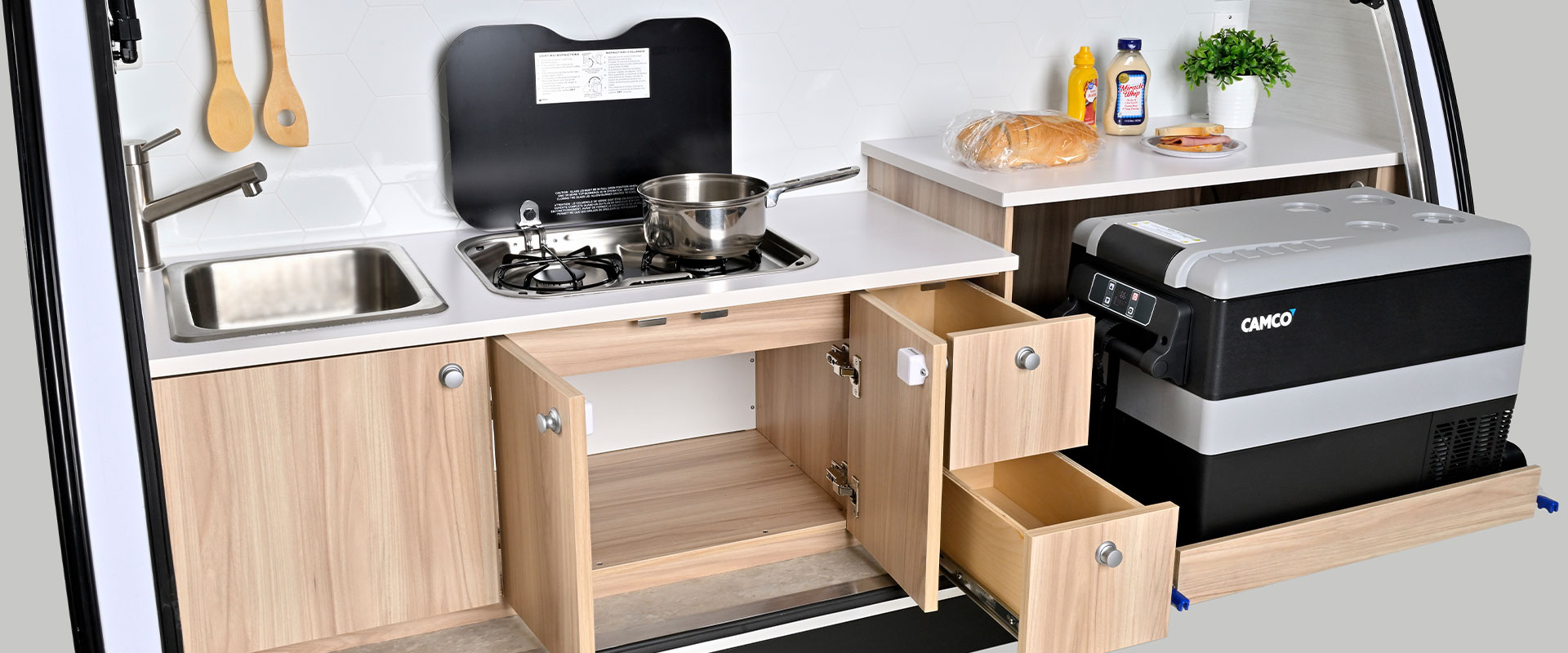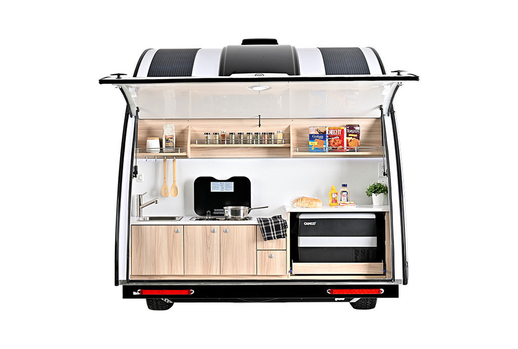 Outdoor cooking adds a delightful dimension to our camping experiences! We are thrilled to have transformed our award-winning TAB 360 Teardrop Camper by relocating the well-equipped kitchen to the rear exterior. Plus, we’ve enhanced it with a convenient hatch door, crafting the ultimate teardrop clamshell camper for unforgettable adventures.