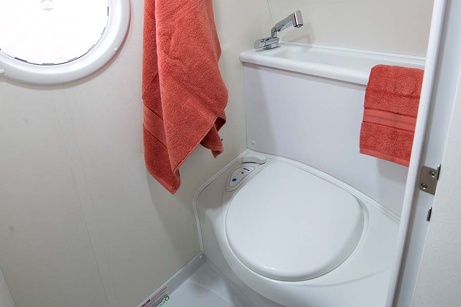 bath, which also includes a sink and a cassette toilet.