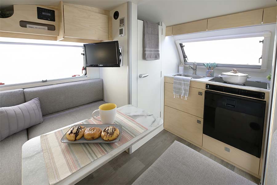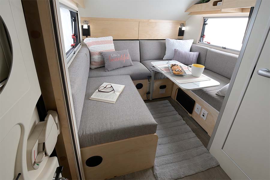 The TAB S Teardrop Camper has everything you need to make your camping experience even more enjoyable. The TAB features a U-shaped dinette that converts into a