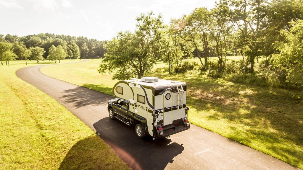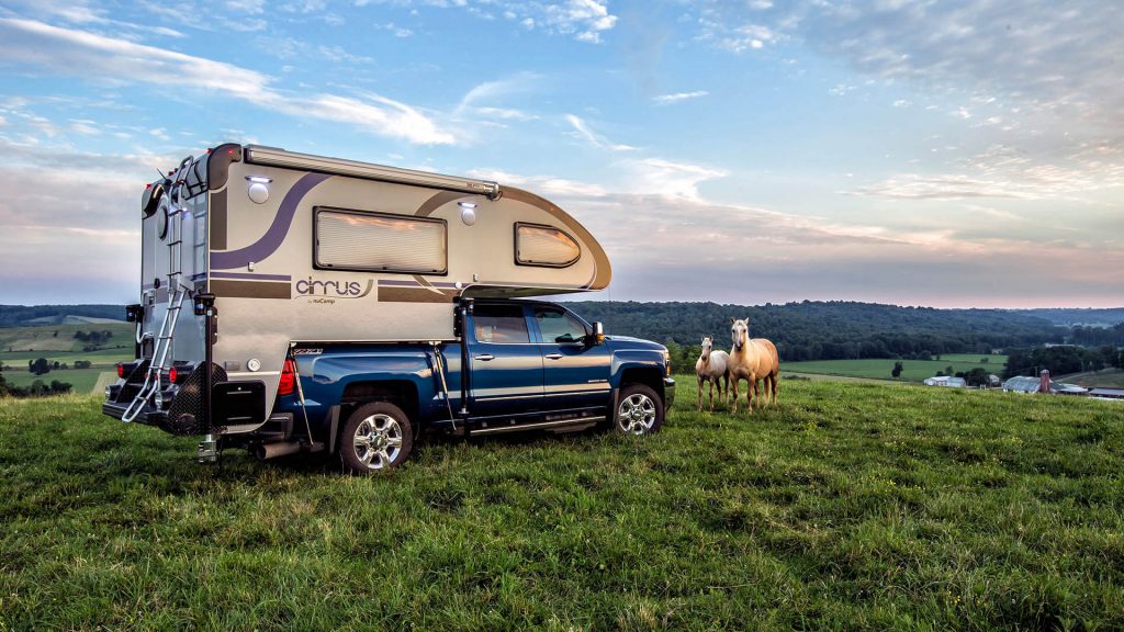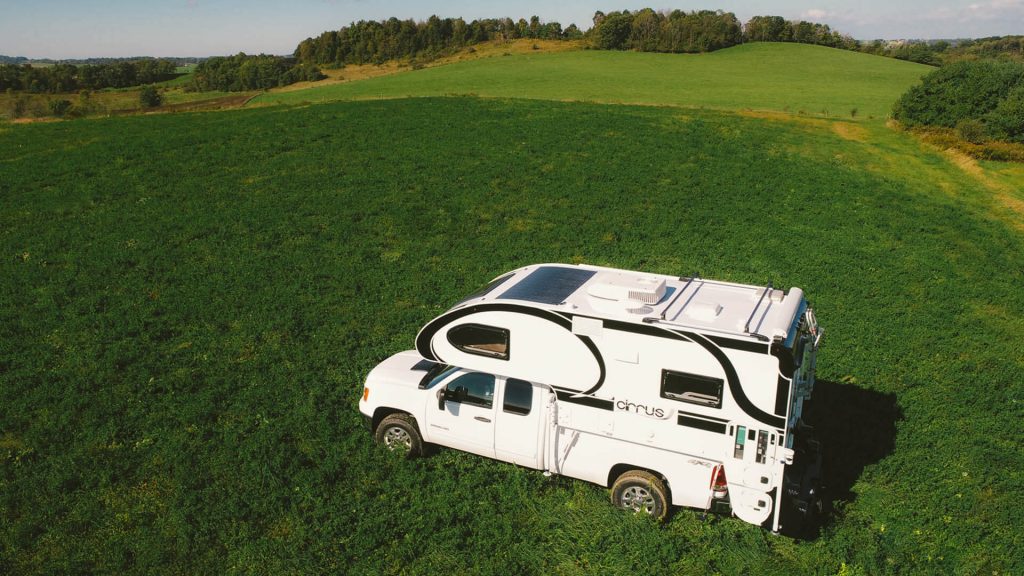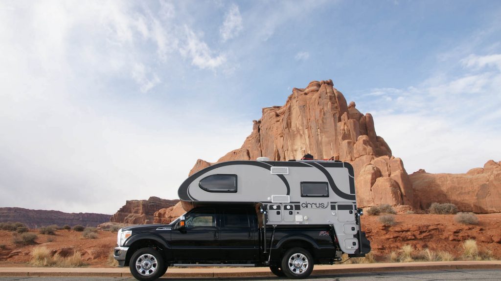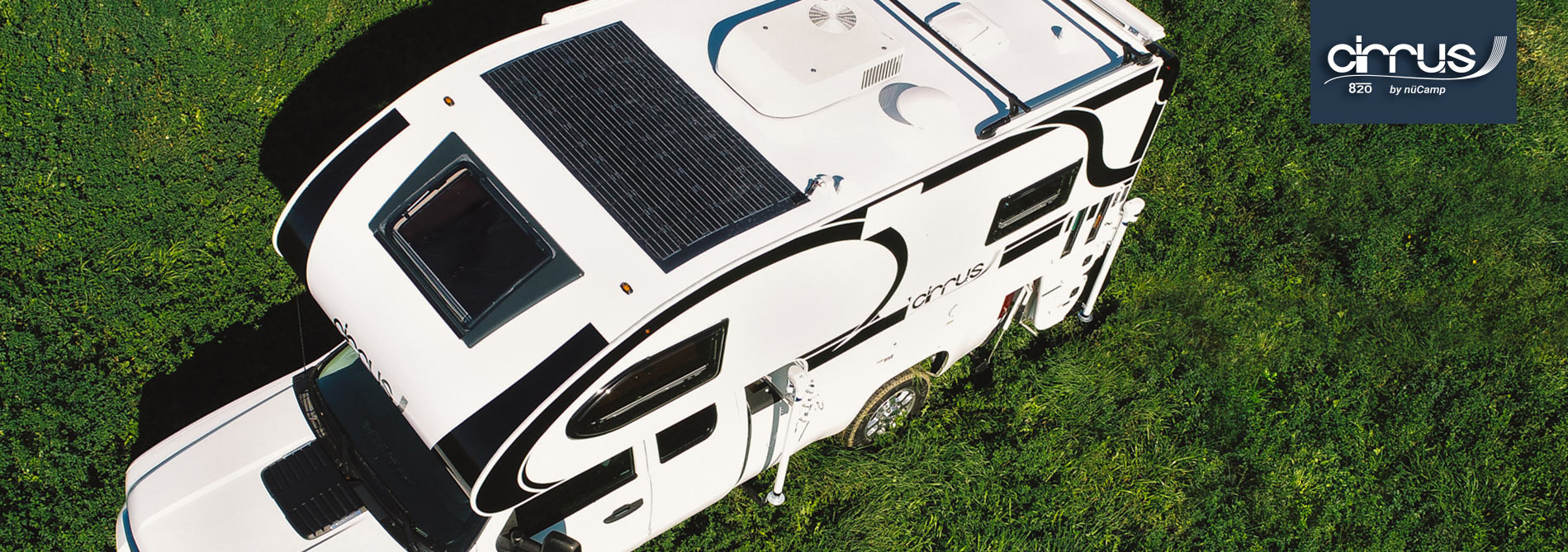 If you're looking for a hard-side, non-slide truck camper that comfortably fits a 3/4-ton truck with a 6.5-foot bed, the Cirrus 820 is for you — outfitted with modern, forward-thinking aesthetics. When you're out camping, you'll appreciate the ample storage compartments, Froli™ Sleep System, motorized 8-foot awning, and other exclusive features.