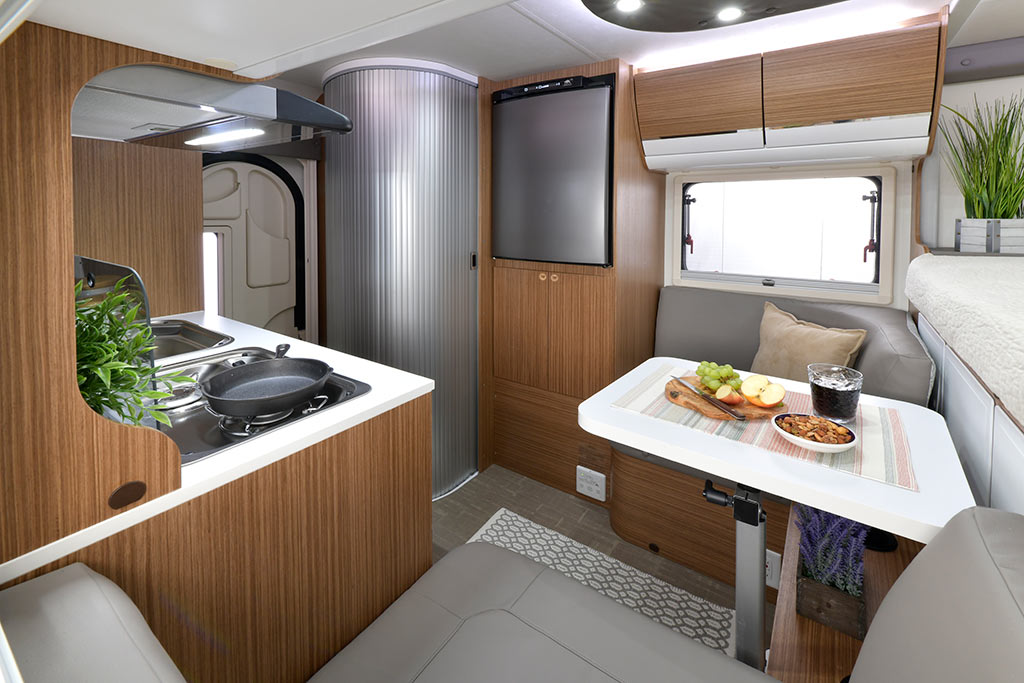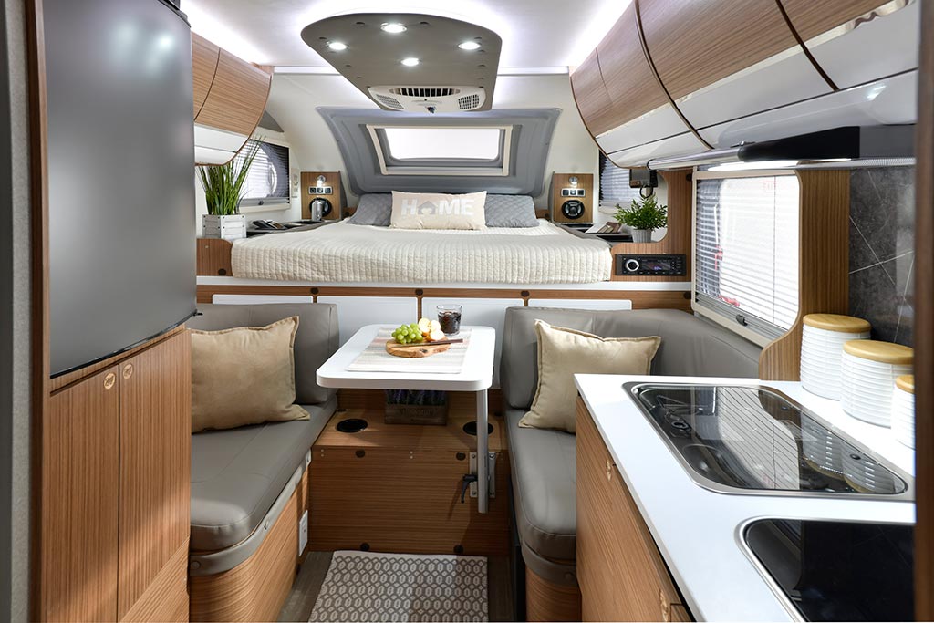 The Cirrus 720 truck camper is another step forward into the truck camper market – and one you have come to expect from nuCamp. From its modern, radiused residential styled cabinetry to its innovative construction with aluminum and Coosa framed technology, the Cirrus 720 spares no expense in design. The ALDE® hydronic central heat/ hot water system and industry-leading Ohio Amish quality craftsmanship place the 720 in a league all its own. The Cirrus 720 gives you an innovative fully-featured ¾-ton truck camper complete with options at 2,100 lbs.