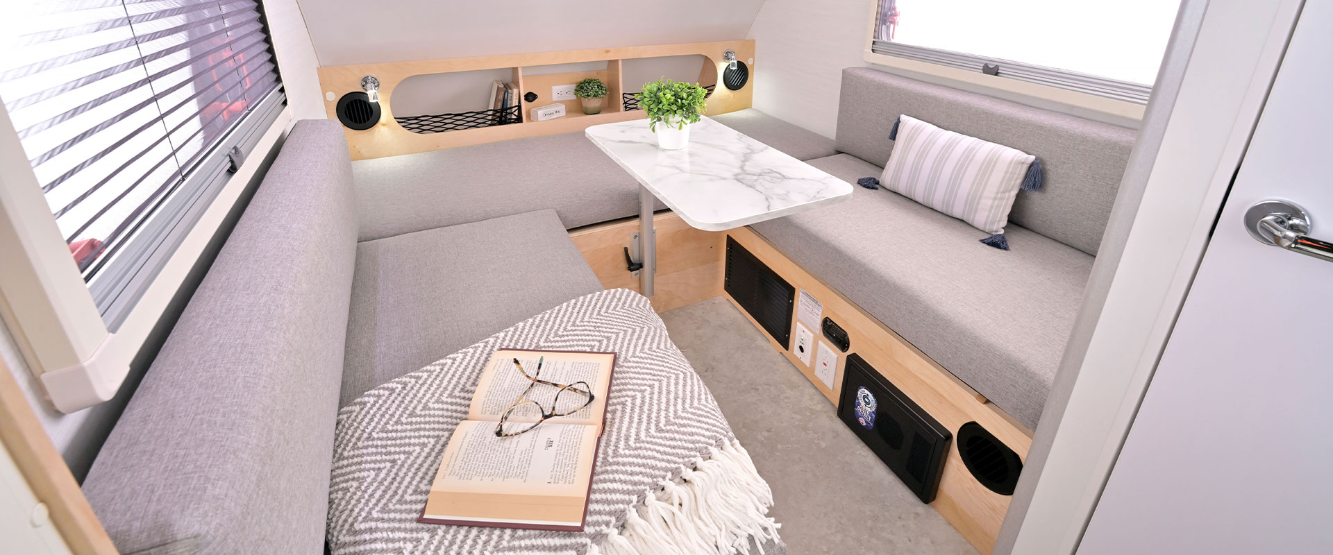 nuCamp reserves the right to make refinements and changes during the model year, including but not limited to materials, components, colors, options, and specifications without notice. All weights, capacities, and dimensions are approximate. Dry weight is the weight of the camper with standard equipment, excluding: propane, tank fluids, cargo, and optional equipment. It is the owner’s responsibility to select the suitable tow vehicle and tow equipment for proper and safe operation.
