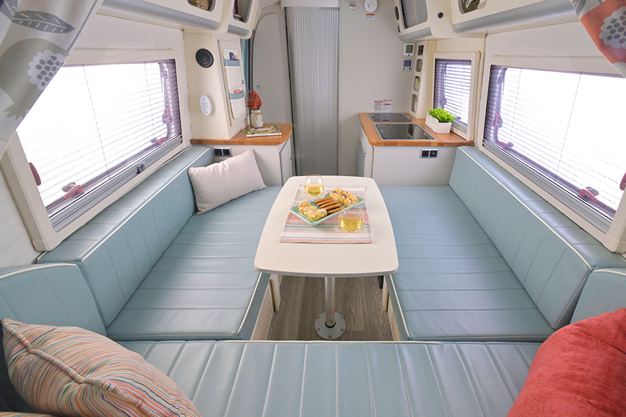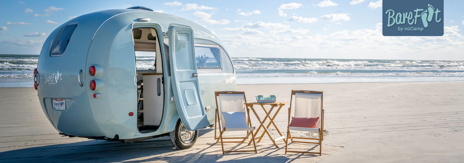 It’s time to kick off your shoes and go barefoot. The Barefoot is a unique, nostalgic travel camper featuring a spacious interior for a touch of luxury on the road. A curvy fiberglass body and a free-flowing layout make up this gem. With a seaglass-colored body and retro design, the Barefoot will make a statement wherever you go — making this the perfect choice for those that love glamping in style.