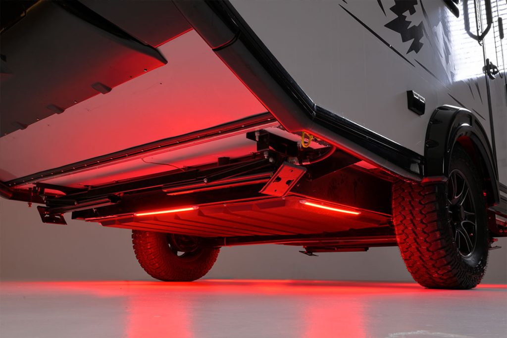 This camper is larger, width, and length than the TAB 320 teardrop camper, ensuring a comfortable and spacious experience. Designed for the adventurous road warrior entrepreneur, its thoughtful split-bed layout includes a designated workspace and a generous sleeping area, perfectly combining productivity and relaxation.