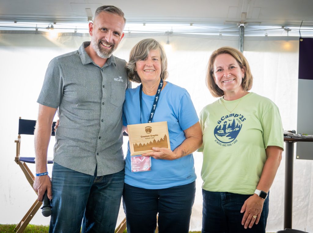 The nuCamp Ambassador of the Year went to Scott Houseman, a devoted member of our community, known for his generosity, adventurous spirit, and his photogenic dog, Nixie. Earlier this year, Scott hosted a rally in Brown County State Park in Indiana, where 64 trailers came together for a week of fun and connection.