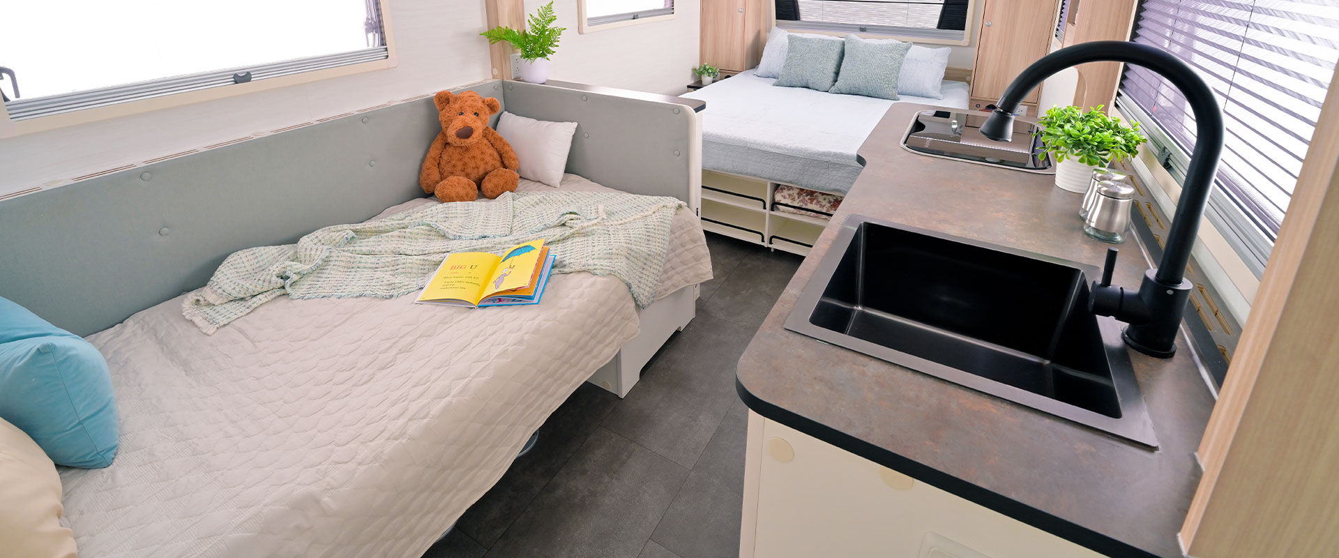 We are delighted to unveil the latest member of the nuCamp family: the Haven! Spanning over 22 feet, this remarkable travel trailer offers an expansive and inviting interior. True to its name, the Haven embodies a sanctuary of safety, comfort, and retreat—meticulously designed to provide a personal haven for campers on every adventure.