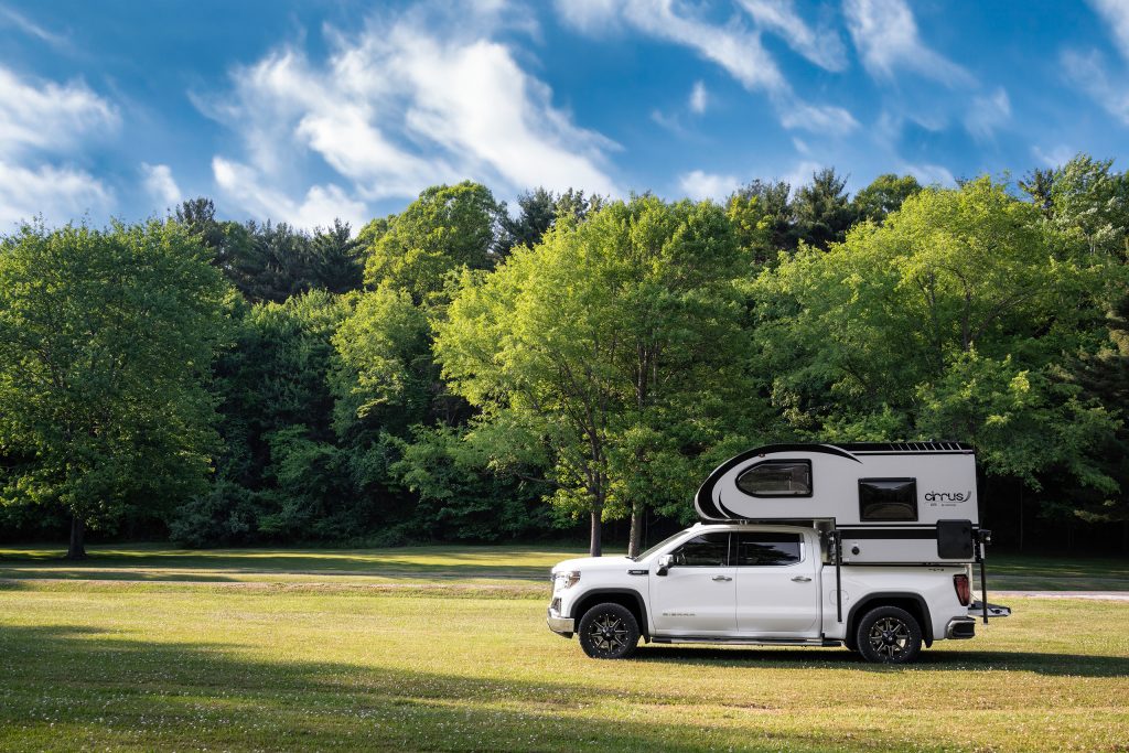 - Cirrus 820: Perfect for couples or small families with a 3/4-ton truck looking for a more spacious camper with added amenities.