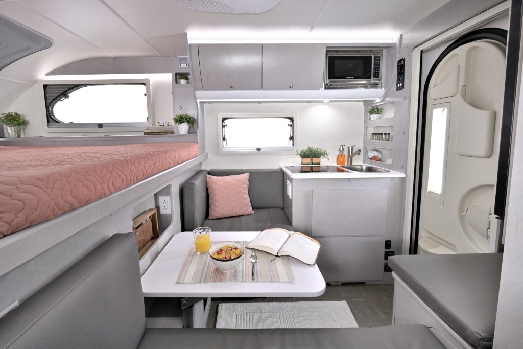 There are minimal changes to our 2023 model year. New this year are charcoal sidewalls, which was an added option to our teardrop lineup in 2022. The new darker sidewalls give the Cirrus a sleek, modern look that is sure to stand out among other campers.
