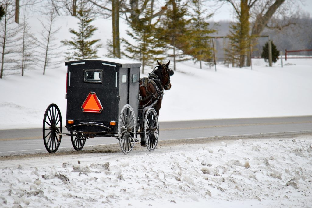 We climbed out of the van and scurried for the shop building as fast as we could. As we hurried on the sidewalk, I saw a man standing at the pasture gate. He was directing buggy traffic into the field, where the men could tie their horses to a wagon loaded with slices of hay. The man directing traffic was hunched over in the wind. His ears were bright red. His nose looked like the rosy beak of a penguin. There was no doubt about it; he was cold.