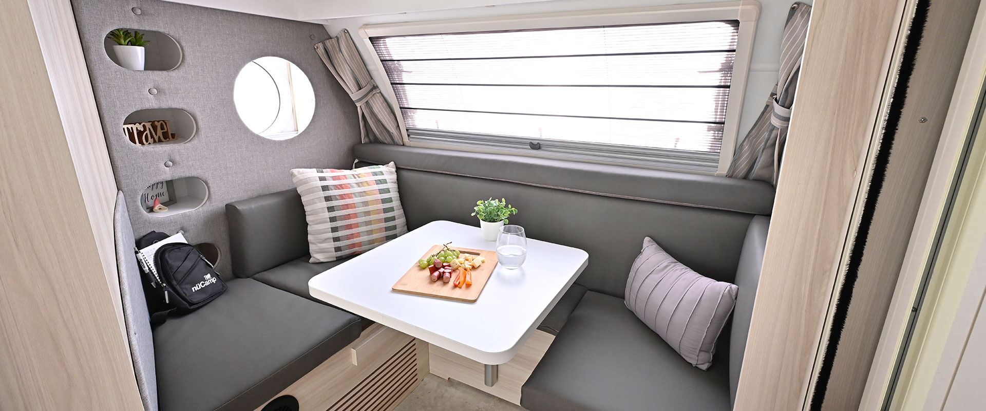 With its sleek exterior and thoughtful interior layout, the nuCamp TAB 400 combines convenience and comfort for memorable outdoor adventures.