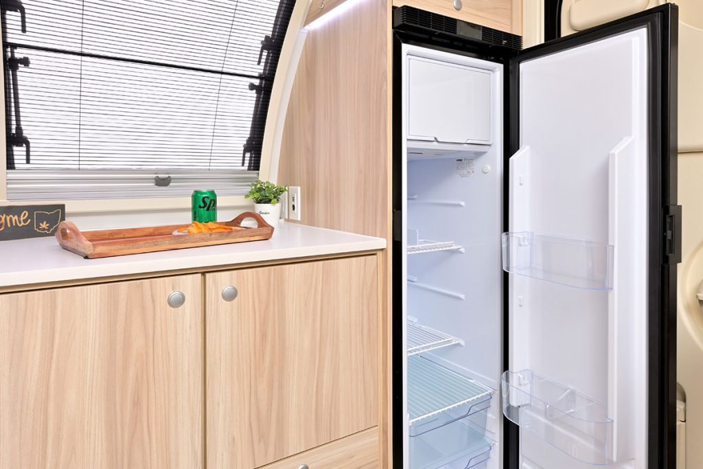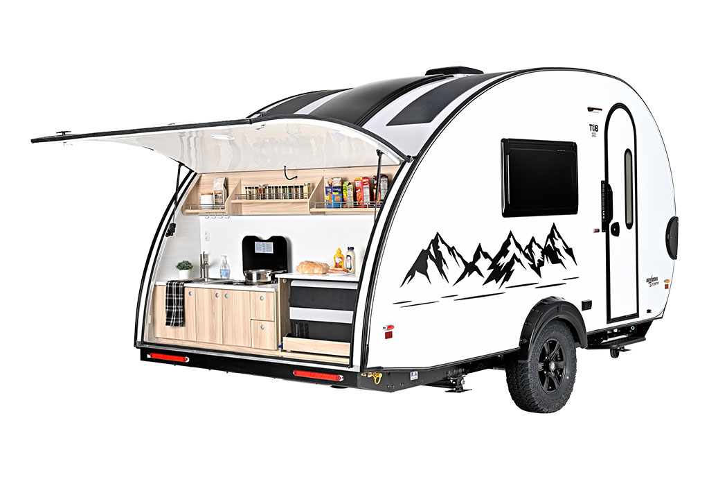 This sleek and versatile teardrop RV offers comfort, convenience, and Ohio-Amish quality craftsmanship – all in a sleek clamshell teardrop design that maximizes space.