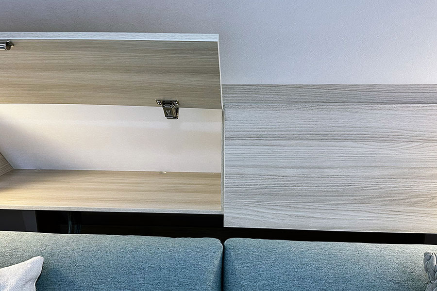 The Signature Series TAB Teardrop Camper has everything you need to make your camping experience even more enjoyable. The TAB features a U-shaped dinette that converts into a comfortable sleeping area with multiple configuration options. The split cushions allow the dinette to be made into an RV queen-sized bed or a twin bed, with the other half remaining in a seated position. With the TAB, there’s no reason to leave the campground for a delicious meal. The galley kitchen has all the necessary equipment, including a stainless-steel sink, a 2-burner glass-top stove, and a 12v refrigerator. The central air conditioning and hydronic heating system will keep you cool in the summer and warm during the cooler months. The Alde® heating system is silent and effective, keeping you warm and allowing you to enjoy a nice hot shower in the TAB wet bath, including a sink and a cassette toilet.