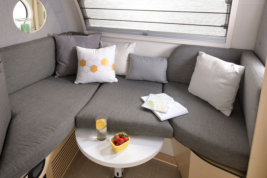 Do you love the teardrop design, but need more room? The TAB 400 is our largest and most spacious teardrop camper. It’s perfect for adventurers who like to get out and stay out for longer periods of time. Inside the camper, you get a dedicated queen size sleeping area, spacious wet bath, roomy kitchen, plenty of storage, and a dinette that can convert into a second sleeping area. With all of that, the TAB 400 is your home away from home.