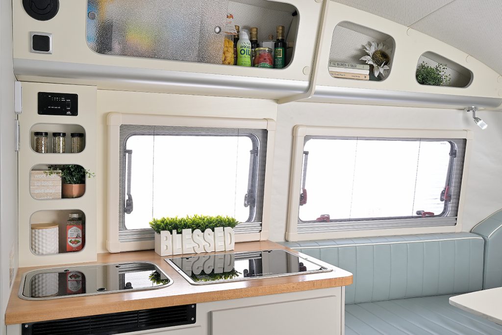 It’s time to kick off your shoes and go barefoot. The Barefoot is a unique, nostalgic travel camper featuring a spacious interior for a touch of luxury on the road. A curvy fiberglass body and a free-flowing layout make up this gem. With a seaglass-colored body and retro design, the Barefoot will make a statement wherever you go — making this the perfect choice for those that love glamping in style.